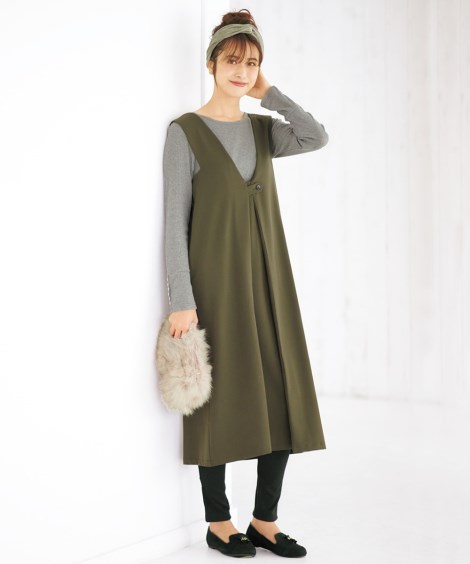 ジャンパー スカート 大きいサイズ レディース デザイン ワンピース カーキ/黒 LLC〜10LC ニッセン