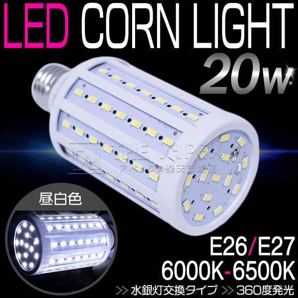 LED電球 コーンライト 水銀灯交換タイプ 20W 6000K-6500K 360度 口径:E26/E27 【LEDライト LEDランプ コーンランプ 水銀ランプ LED照明 コーン型 室内照明 屋外照明 街路灯 ガーデンライト 作業用 施設灯 360°】